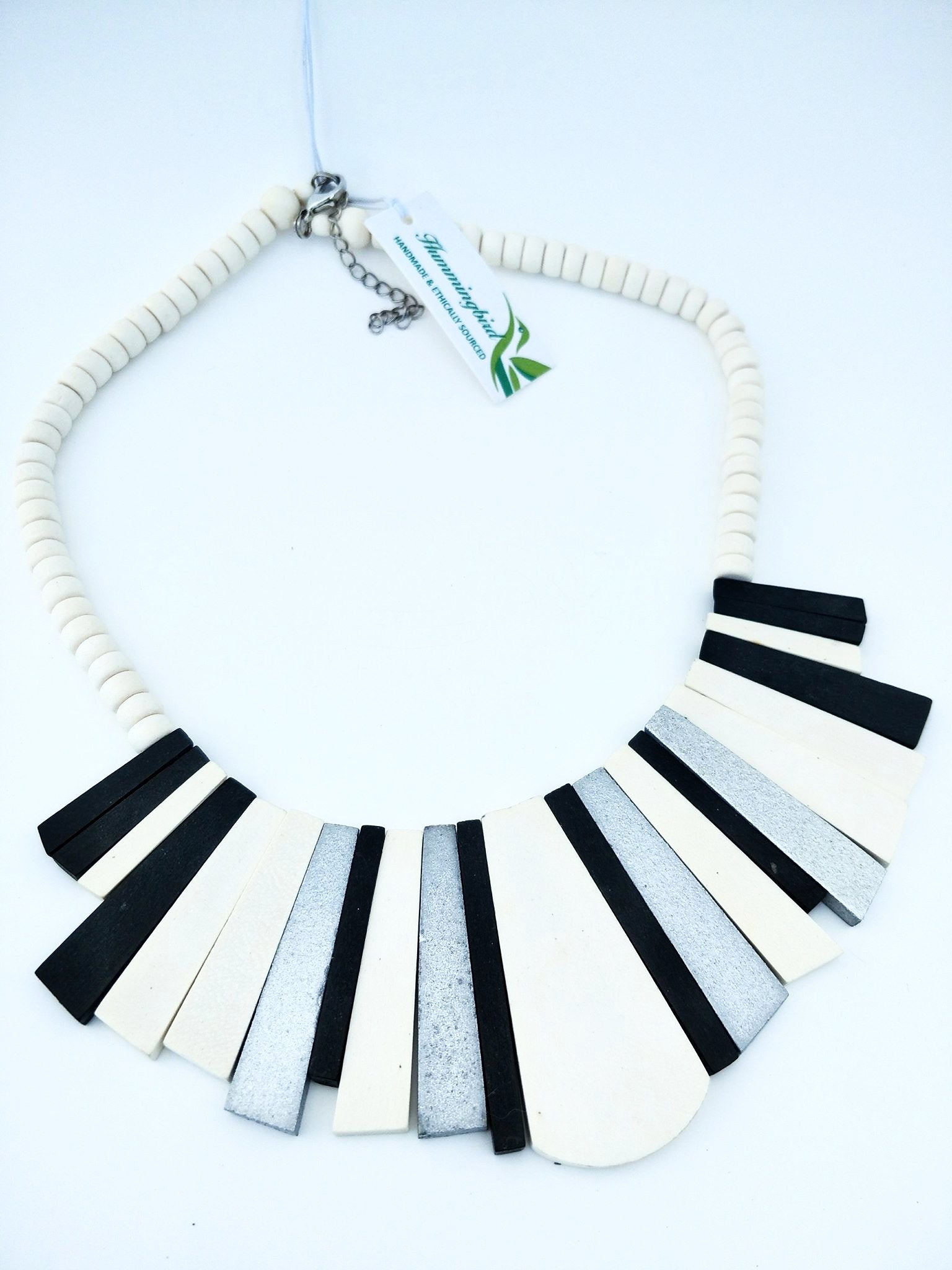 Powder Blue & Faded Blue Handmade Timber Necklace